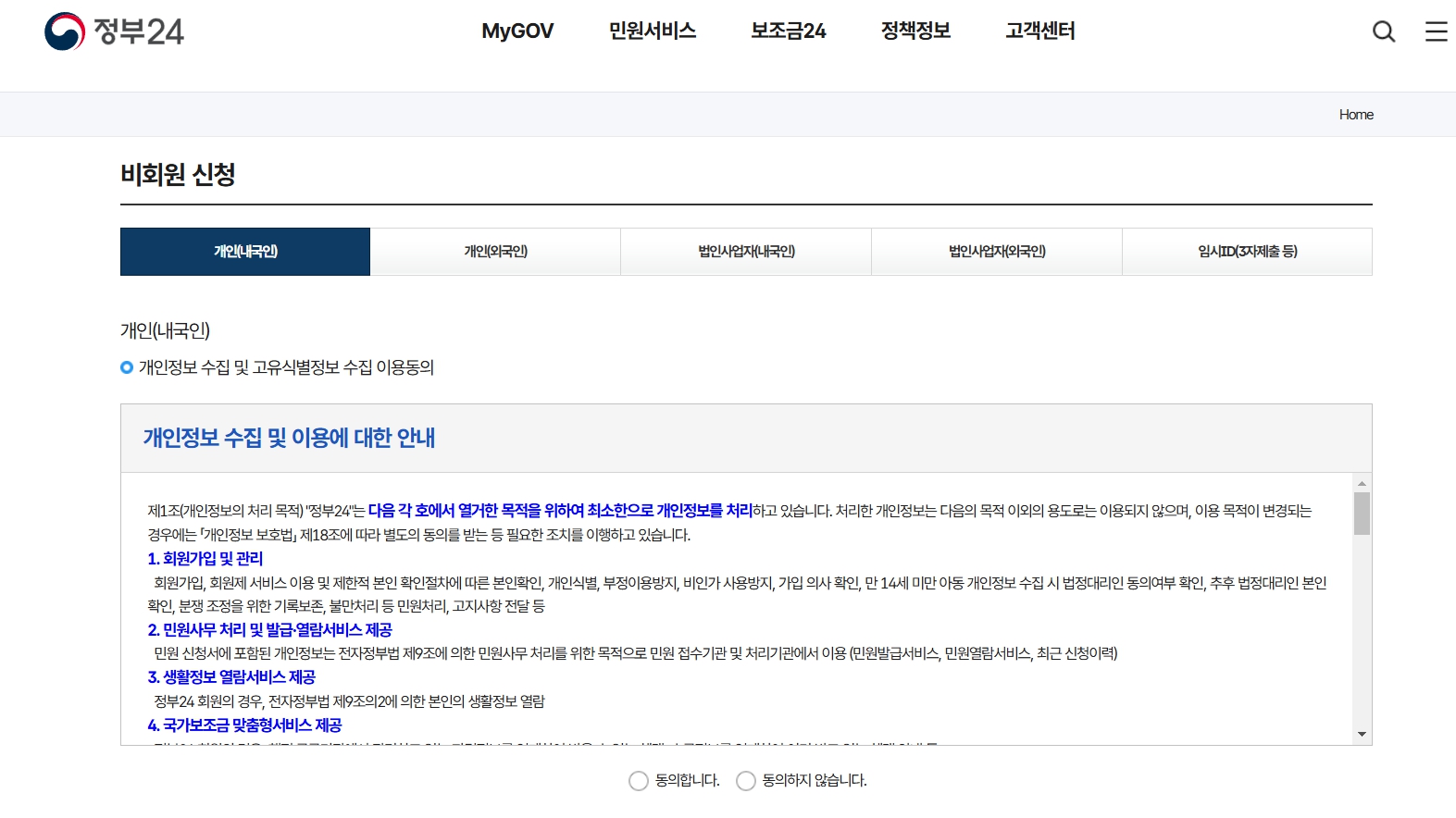 1. 정부24 홈페이지 접속: 정부24 웹사이트에 접속합니다.